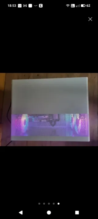 Caja de PC con un diseño moderno y buena ventilación. - Incluye 6 ventiladores RGB. - Panel lateral de cristal templado. - Falta limpiar polvo - La caja con sus cables y luces funciona perfectamente. La disquera funciona a veces.