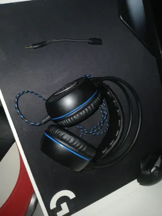 Auriculares gaming Logitech en color negro con detalles en azul. - Diseño ergonómico para mayor comodidad. - Diadema ajustable. - Cable trenzado duradero. - Micrófono flexible.