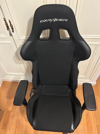 Silla de gaming DXRacer en color negro. Diseñada para ofrecer comodidad y soporte durante largas sesiones. - Diseño ergonómico. - Tapicería de alta calidad. - Base giratoria con ruedas.