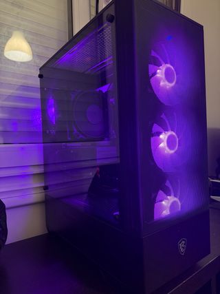 Ordenador gaming con iluminación LED. - Diseño moderno con panel lateral de cristal templado. - Múltiples ventiladores frontales con iluminación. - Estructura robusta y elegante. En ma segunda foto teneis los componentes, el ordenador va bien solo que no lo uso.