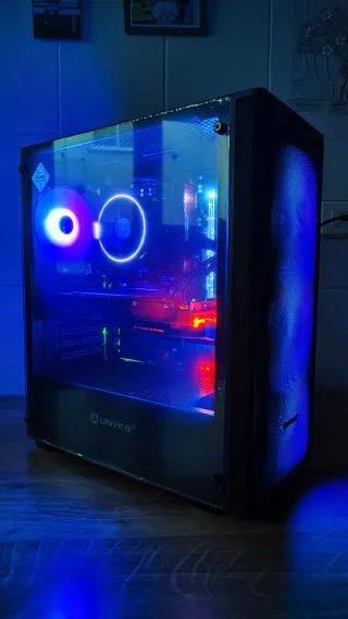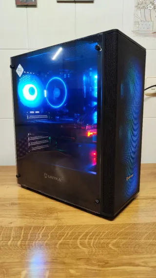 Ordenador de sobremesa para gaming con iluminación RGB. I5-10400f - Tarjeta gráfica Zotac Gaming 1660 super 6gb - Memoria RAM XLRB 16 gb dual Chanel 2133 Mt/s - SSD Kioxia Exceria 500 gb -Disco duro 1T -Placa base msi z490 a pro -Fuente corsair 550w Todo funciona perfectamente