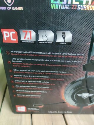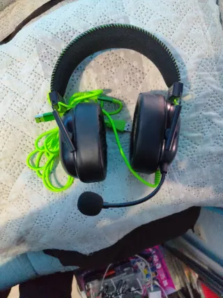 Cascos gaming en perfecto estado, casi sin uso. Son cómodos y cuentan con un diseño moderno. - Color negro con detalles en verde neón. - Micrófono integrado. - Conexión por cable USB.