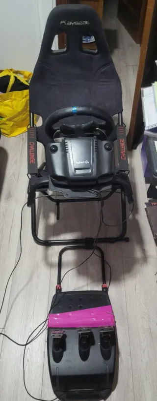 Silla de gaming Playseat Challenge con volante y pedales Logitech. - Estructura plegable y fácil de montar. - Incluye volante y pedales logitech G29, tiene uso pero funciona perfecto. -Lo vendo por falta de tiempo y de espacio Escucho ofertas, mas fotos por whatsapp
