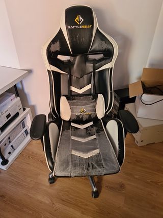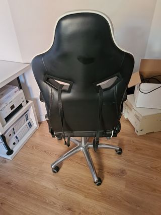 Silla gaming color negro, funcionamiento perfecto, aunque se puede apreciar que la tapicería o el recubrimiento que lleva esta desgastado, el asiento es comodo y el relleno está perfecto.