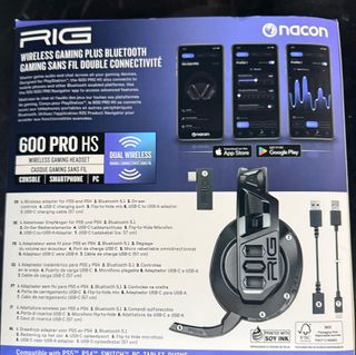 Vendo estos Nacon RIG 600 Pro HS completamente nuevo, sin uso. Auriculares gaming con sonido envolvente, diseño ultraligero y micrófono desmontable con cancelación de ruido. Conectividad mediante adaptador USB y Bluetouch para una conexión estable y sin cables. Batería de 18 horas de duración y personalización mediante app para ajustarlos a tu gusto. Compatible con PlayStation, PC y otros dispositivos con conexión Bluetooth. Incluye todos los accesorios originales y la caja abierta para la fotos.