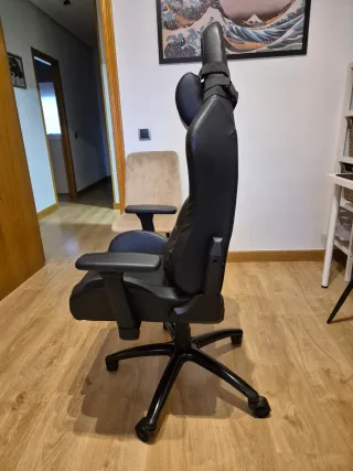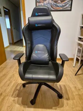 Silla de gaming con un diseño ergonómico y acolchado para mayor comodidad. - Tapicería en polipiel negra y detalles en azul. - Reposacabezas y soporte lumbar incluidos. - Base de 5 ruedas para fácil movilidad. Se vende silla gaming marca NewSkill por no usarla, totalmente nueva. El respaldo se puede reclinar en varias posiciones y los reposabrazos se pueden subir/bajar y girar hacia los lados. No hago envío, venta en persona (Murcia) Precio negociable.