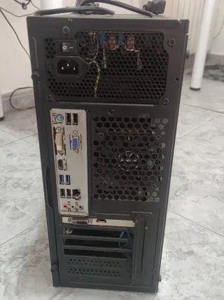 Torre de ordenador para gaming, ideal para empezar. - Diseño de torre negra. - Puertos traseros para conexión de periféricos.
