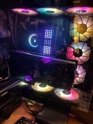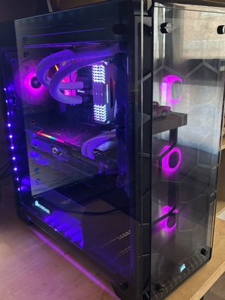 Potente ordenador para gaming y workstation. Para jugar a todo a 4K y/o como pc para renderizado, edición de vídeo, etc. por su cantidad de RAM y 16gb de memoria gráfica). Montado a mediados de 2023 equipo tope de gama. Componentes: - i7 13700k - Msi mag z790 tomahawk wifi (versión ddr5) - 64gb RAM ddr5 5600 corsair dominator - rtx 4080 msi gaming x trio - ssd m2 nvme 1tb y otro 2tb samsung 980 pro - fuente corsair rm1200x shift 80 plus gold - Refrigeración Corsair H150i Elite LCD XT (AIO con pantalla) - Caja Lian Li O11 Dynamic EVO (una de las mejores del mercado) Se conservan: - cajas excepto AIO - caja con herrajes del chasis