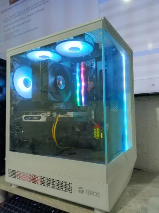 Ordenador de sobremesa gaming con iluminación RGB personalizable. Diseñado para un alto rendimiento en juegos y tareas exigentes. 4060 gráfica asus Intel i5 12400f 16gb RAM corsair 1tb ssd nvme Placa base b760m Gigabyte Disco duro Hp ex900 Fuente cooler máster Caja Msi Antena wifi Bluetooth Instalación de Windows 11 Activación con office y toda la optimización del sistema operativo, dirvers