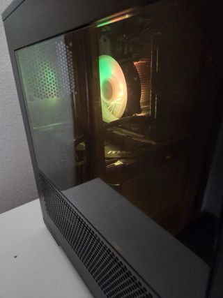 Torre de PC gamer con un diseño moderno y elegante. Cuenta con iluminación RGB frontal. - Panel frontal con diseño de líneas diagonales. - Logo de la marca en la parte superior. - Detalle de iluminación LED en la parte inferior frontal. Intel core i3 6600.ventilador d e apoyo grande nuevo multicolor. 16 GB ddr 3200 corsair vengance lpx con disipador.tarjeta gráfica Nvidia de 4 GB.disco duro SSD 500 GB.lateral transparente metraquilato.windows 11 pro activado.va muy fluido recién formateado y actualizado.solo tiene es golpe en la esquina que no afecta a nada al pc.ese golpe se hizo con la caja vacía cayó al suelo.va muy fluido el p