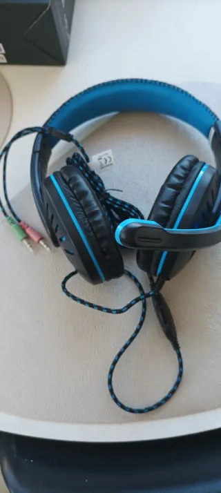 Auriculares para gaming con un diseño moderno y cómodo. - Color negro y azul. - Micrófono integrado. - Conexión jack 3.5mm.