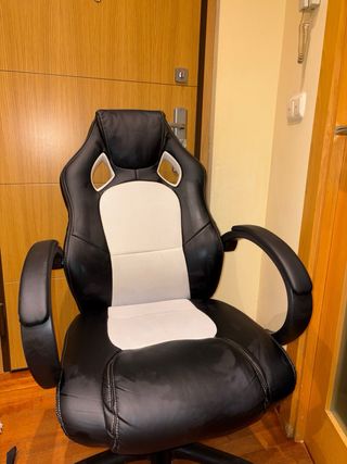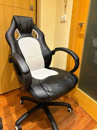 Silla de estilo gaming con ruedas. se encuentra en buen estado, solo tiene el arañazo mostrado detrás