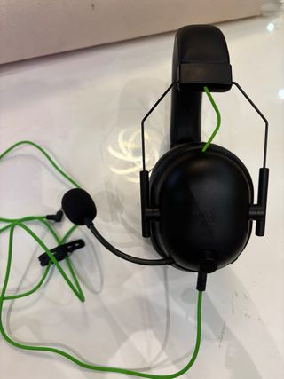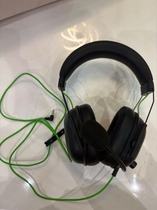 Auriculares gaming Razer Blackshark V2 X en color negro y verde. Diseñados para una experiencia de juego inmersiva. - Micrófono flexible para comunicación clara. - Almohadillas de espuma viscoelástica para mayor comodidad. - Diadema ajustable para un ajuste perfecto.