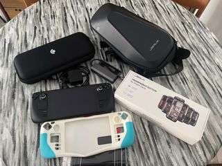 Consola portátil Steam Deck con almacenamiento de 1TB. - Incluye funda de transporte negra. - Incluye funda protectora blanca y azul. - Incluye cargador y adaptador. - Incluye funda de transporte rígida negra. - Incluye caja de accesorio transparente. - Incluye carcasa original Pantalla perfecta, ningun arañazo. Apenas se ha usado