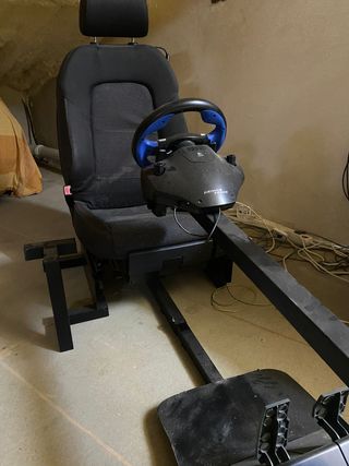 Simulador de conducción completo con asiento. - Estructura metálica robusta. - Asiento de coche con reposacabezas. - Volante y pedales incluidos.