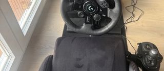 Pack de volante Logitech para PS5 y silla gaming. - Volante de cuero. - Pedales incluidos. - Palanca de cambios. - Silla con asiento acolchado.