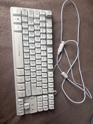 Teclado de ordenador en color blanco, con conexión USB. - Diseño compacto. - Teclas con disposición QWERTY. - Cable trenzado.