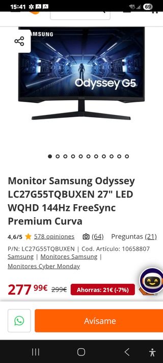 Vendo monitor tope de gama Samsung Odyssey G5 curvo 27" 2k QHD 144HZ, para jugar o trabajar, fue un regalo y no lo utilizo