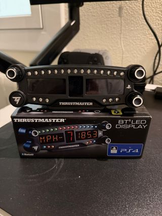 Thrustmaster BT Display PS5/PS4/PC Pantalla LED Bluetooth Thrustmaster. Perfecto estado. Perfecto para mejorar tu setup de conducción. - indicadores led con papel tintado, ya que deslumbran. aunque le bajes la intensidad. se puede quitar y dejarlo como el resto. - botones personalizados en flúor. - Se conecta mediante Bluetooth. - Compatible con PS5/PS4/PC - Diseño compacto y elegante. - Batería infinita(dura muchísimo) - Incluye caja original. - vendo por no utilizarlo. sim racin,simulador conduccion