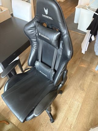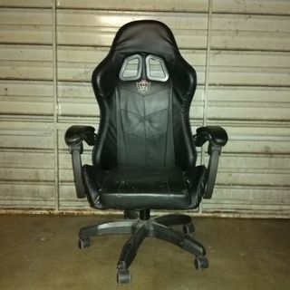 Silla de estilo gaming en color negro. Diseñada para ofrecer comodidad. escucho ofertas - Tapicería de cuero sintético. - Reposabrazos acolchados. - Base con ruedas para fácil movilidad.