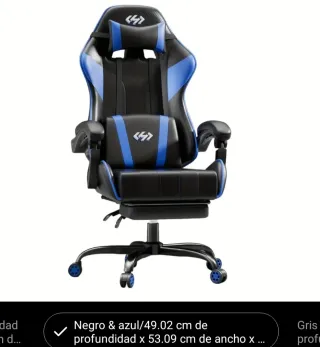 Silla gaming a estrenar, precintada y lista para usar. Diseño ergonómico para largas sesiones - Color: Negro y azul. - Profundidad: 49.02 cm. - Ancho: 53.09 cm