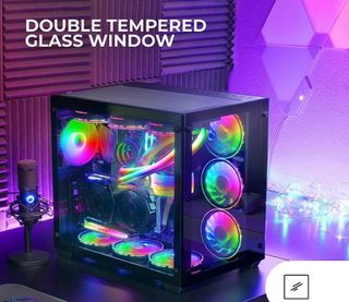 Ordenador de sobremesa para gaming con iluminación RGB -con envío - Ventiladores con iluminación LED. - Diseño moderno y elegante. - Panel lateral de cristal templado. CPU- AMD Ryzen 5 PRO 5650 with Radeon Graphics NUCLEO-6 PROCESADOR LOGICOS-12 MEMORIA RAM-32,0GB DISCO- KINGSTON SNV3S1000G WIFI-Realtek 8852BE Wireless LAN Wifi 6 PCI-E NIC GPU-AMD Radeon(TM) Graphics 16,2GB