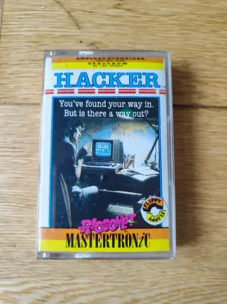 Juego HACKER versión dual: en una cara está grabada la versión SPECTRUM y en la otra la AMSTRAD. Venta exclusiva como objeto de coleccionismo informático. Software sin funcionamiento comprobado.