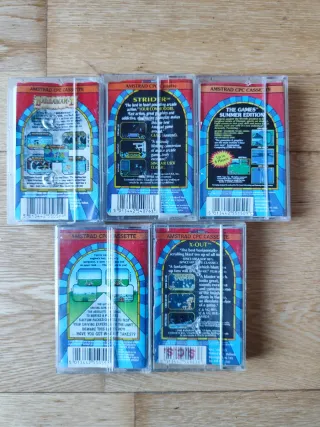Lote de 5 juegos para AMSTRAD CPC de la serie KIXX: - BARBARIAN II - OUT RU - STRIDER - THE GAMES SUMMER EDITION - X-OUT Venta exclusiva como objetos de coleccionismo informático. Software sin funcionamiento comprobado.
