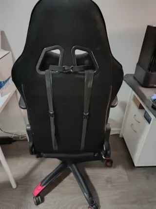 Silla de estilo gaming con un diseño ergonómico y deportivo. Combina colores negro y rojo para un aspecto llamativo. - Sillón de tela - Respaldo alto con soporte lumbar. - Cojín reposacabezas. - Base con ruedas para fácil movilidad. En perfecto estado, sin desperfectos. Poco uso. A recoger en mi domicilio en Cáceres, no me desplazo.
