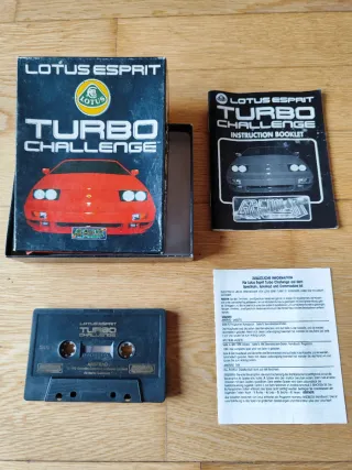 Juego LOTUS TURBO ESPIRIT CHALLENGE para AMSTRAD CPC cinta en versión caja de cartón. Venta exclusiva como objeto de coleccionismo informático. Software sin funcionamiento comprobado.