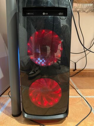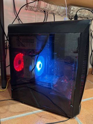 Ordenador de sobremesa para gaming con un diseño llamativo y componentes internos visibles. - Ventiladores con iluminación LED. - Ventana lateral transparente. Funciona lento