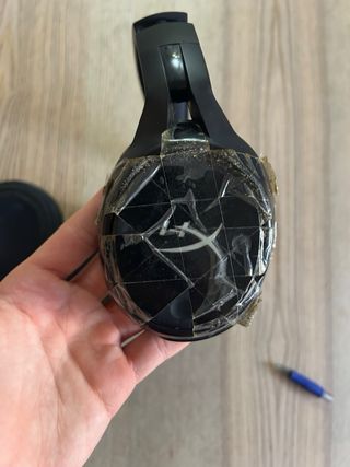 Auriculares gaming HyperX con micrófono. - Almohadillas desgastadas. - Incluye micro. - Incluye USB de conexión Bluethoot. Funcionan, tienen roto las almohadillas, pero si te las pones funcionan a la perfección los cascos. El micro también funciona perfecto.