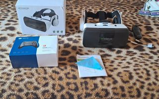 Gafas de realidad virtual, prácticamente sin usar, en su caja con todos sus componentes, joystik 2, doble conexión a ifone o Android. Nuevas.