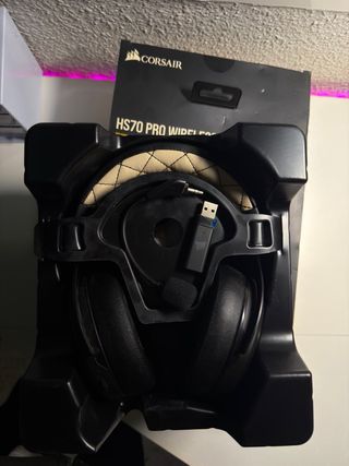 Auriculares inalámbricos para gaming. Muy buen estado, funcionan perfectamente, de lo mejorcito en cuanto a sonido y micrófono, se entrega junto a su caja original y accesorios. - Modelo HS70 PRO WIRELESS. - Sonido envolvente 7.1. - Diseño con diadema acolchada.