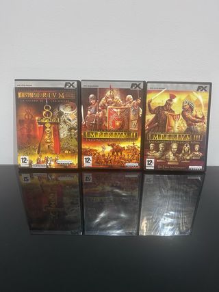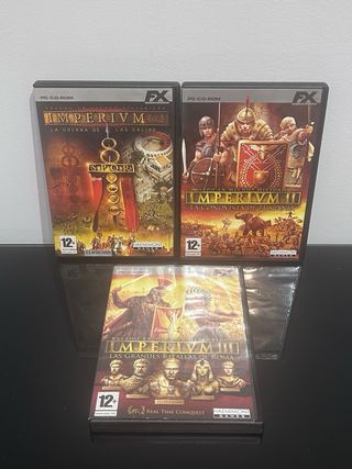 Vendo lote de 3 juegos de PC en edición original de FX Interactive: • Imperivm: La Guerra de las Galias • Imperivm II: La Conquista de Hispania • Imperivm III: Las Grandes Batallas de Roma Todos son versión española, cajas y portadas en perfecto estado, con discos muy bien cuidados y sin arañazos. Ideal para coleccionistas o amantes de la estrategia en tiempo real ambientada en la Roma antigua.