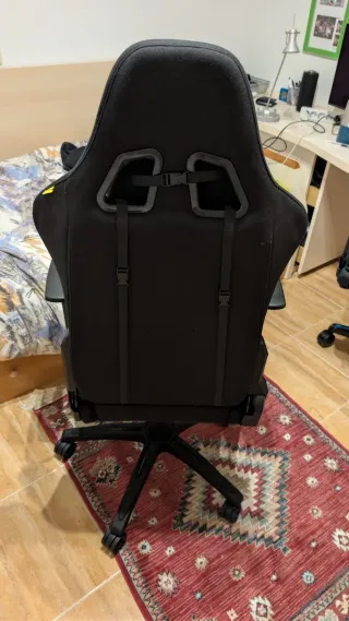 •Está en perfectas condiciones y tiene muy poco uso. Se puede apreciar en el acolchado, ya que no está nada deformado ni desgastado. •La vendo porque me he mudado y no me entra en la nueva habitación. •En la tercera foto se ve que hay una cremallera que está sin cerrar. No está rota, es simplemente que al volver a montarla no fui capaz de cerrarla. De todas formas no afecta en nada a su uso. •Los brazos tienen altura regulable y se pueden inclinar 3 posiciones. •El respaldo es regulable, pudiendo estar totalmente recto o prácticamente tumbado. •Es regulable en altura. •Me costó 139 euros (última foto).