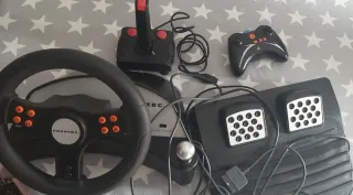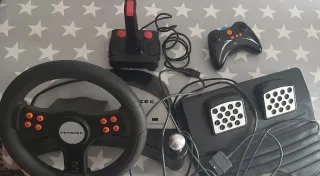 Volante de gaming compatible con PlayStation y PC. Diseñado para una experiencia de conducción inmersiva. - Diseño ergonómico para un agarre cómodo. - Botones de control integrados en el volante. - Pedales incluidos para mayor realismo. Le falta la pieza de agarrar a superficies del volante. Es posible arreglarlo o pensar otra cosa. Yo no lo hago porque no me hace falta y lo tengo cogiendo polvo. Mejor que le dé uso otra persona que si.