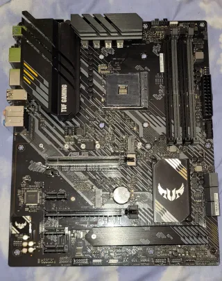 Placa base ASUS TUF B550-PLUS Gaming con socket AMD AM4. - Chipset AMD B550. - Soporte para procesadores AMD Ryzen. - Ranura PCIe 4.0. --Un Año y medio de uso Placa base ASUS TUF Gaming B550-PLUS ATX, ideal para montar o actualizar un PC Gaming potente y estable. Compatible con procesadores AMD Ryzen (series 3000, 4000G y 5000), perfecta para gaming, streaming y trabajo profesional. Destaca por su gran calidad de construcción, componentes TUF de alta durabilidad, soporte para PCIe 4.0, memorias DDR4 de alta velocidad, conectividad completa con USB 3.2, M.2 NVMe, LAN Gigabit y excelente disipación térmica. Una opción muy buscada