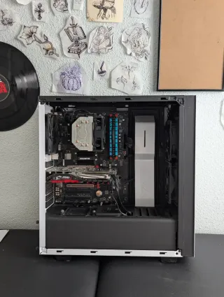 Equipo gaming antiguo aunque puede con títulos nuevos según configuración. La caja es de lo mejor para expandir en componentes, todo tipo de ventilación y espacio perfecto. En la foto de la ventana se ve todavía el plástico protector. La gráfica rinde como una RX580 pero con menos VRAM. Puedes ver ejemplos en YouTube. Características y componentes: Caja gaming NZXT H440 Fuente Corsair VS550 550W 80 Plus White CPU Intel i5 7600K de 4 GHZ RAM CORSAIR VENGEANCE DDR4 16GB Placa ASUS H110M-D SSD 512GB SATA3 MSI GeForce GTX 970 GAMING 4G WIN11 PRO licencia digital WIFI con 2 antenas