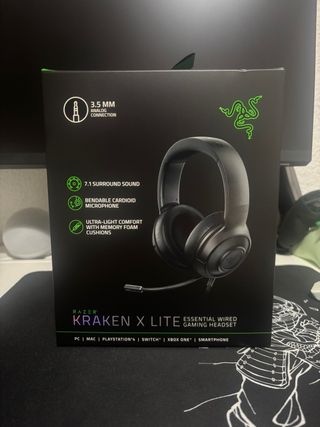 Totalmente nuevos, a estrenar. 🆕 Auriculares gaming Razer Kraken X Lite con conexión analógica de 3.5 mm. 🎧 • Especificaciones: - Sonido envolvente 7.1. - Micrófono cardioide flexible. - Comodidad ligera con almohadillas de espuma viscoelástica. - Compatibles con PC, Mac, PlayStation 4, Switch, Xbox One y smartphones. No leer: Gaming | Cascos | Headset | Auriculares | Auris | Juego | Videojuegos | Razer | Logitech | Sony | Nintendo | Xbox | Mac | PC | Ordenador | Portátil | Consola | Movil | Sonido | Micrófono | Cable | Nuevo | Comodo