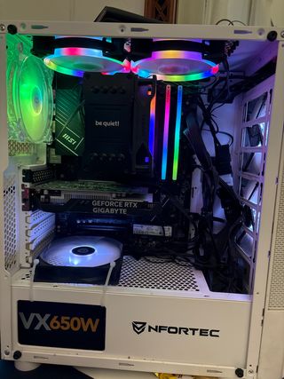 PC perfecto para jugar, pasta térmica cambiada recientemente, los componentes son: Procesador: ryzen 5 2600 Gráfica: rx 5700 8gb GDDR6 Ram: 32 GB ddr4 3200mhz g.skill Trident z Placa base: asus tuf gaming b450m-pro Fuente alimentación: bitfenix 750w 80+ gold Memoria: 1tb m.2 crucial 5000 mb/s Caja: Nfortec Draco v2 Regalo refrigeración líquida nfortec Andrómeda 240mm la quite porque creo que tiene algún tipo de defecto pero seguro tiene fácil arreglo. (Escucho ofertas)