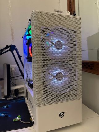 Ordenador de sobremesa para gaming con iluminación RGB. - Ventiladores frontales y trasero con iluminación LED. - Panel lateral de cristal templado. - Diseño moderno y elegante. - Teneis toda la informacion en las fotos, acepto envios o pruebas en mi casa si quereis venir a verlo y probarlo, tengo todas las cajas para guardar cada uno de los componentes. - Gente seria de verdad, y no hagan ofertas absurdas. - Poco negociable. 8 meses de uso y un cuidado tremendo, es una locura de pc.