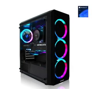 Potente ordenador de sobremesa para gaming con iluminación LED. - Diseño moderno en color negro. - Ventiladores con iluminación RGB. - Tarjeta gráfica Gigabyte GeForce RTX. - Fuente de alimentación Sagitta 850W.