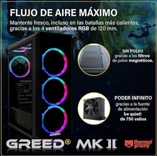 Pc Gaming greed mk2. - Geforce rtx 5060 ( EN LA FOTO PONE 5060 TI PERO LLEVA 5060 ) - 32gb Ram 3200mhz G.skill ddr4 - Ryzen 7 5700X - Fuente de Alimentacion Be quiet ! de 750 vatios - 1 tera de gb ssd El ordenador esta recién comprado , No tengo la caja por que la tire pero tengo la factura de pc componentes donde se ve. Lo vendo ya que me ha surgido algo mas importante que pagar. No marear.