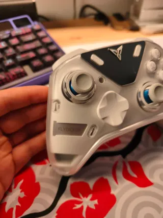 Mando Flydigi Apex 5 en color blanco. Botones mecánicos, pantalla y software integrada. Está impoluto.