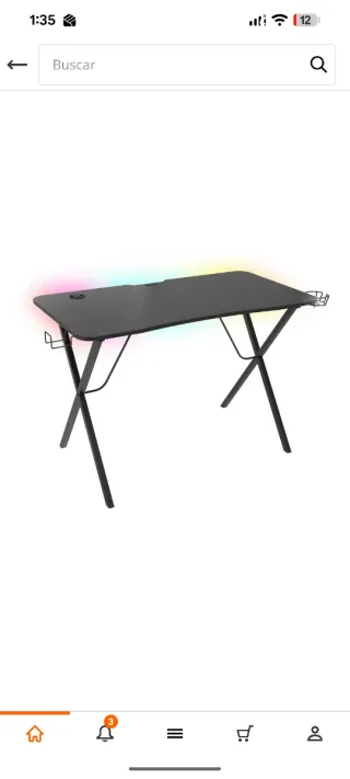 Altura: 75 cm Ancho: 60 cm Longitud: 113 cm Versión USB 3.1 Gen 1, 3.0 Color: negro Cantidad de puertos USB: 3 Material: acero, MDF Iluminación: sí Soporte para auriculares, portavasos, cables organizadores Funciones Hub: USB Está perfecta, son 120€ nueva, escucho ofertas