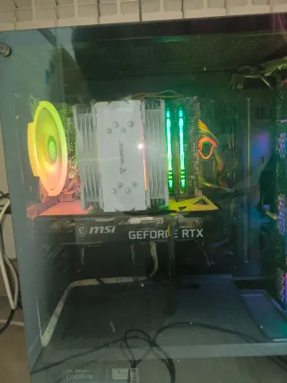 No respondo a ofertas ridiculas. Equipo gaming completo listo para usar con Windows 11. Incluye torre, monitor, teclado, ratón y alfombrilla. Tanto la torre como los periféricos han sido limpiados a fondo para su venta y todos funcionan a la perfección. Comprado para jugar y lo vendo porque ya no lo uso desde hace tiempo. Componentes: - Tarjeta gráfica PNY GeForce RTX2060 6GB GDDR6. - Procesador Intel i5 8400. - RAM DDR4 2x8GB Corsair Vengance 3000Mhz - SSD 512GB Samsung. - Fuente de alimentación EVGA 850W B3 80 Plus Bronce modular. - Placa base MSI B360M Mortar. - Refrigeración Cooler Master MasterAir G100M. - Caja Cooler Máster