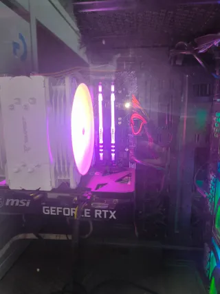 Procesador: AMD Ryzen 7 3800XT (8 núcleos / 16 hilos) Tarjeta gráfica: NVIDIA RTX 3060 Ti de 8 GB RAM: 16 GB DDR4 3200 MHz Almacenamiento: SSD NVMe M.2 512 GB Refrigeración líquida: AIO Nfortec 240 mm. Caja: Nfortec con panel de cristal, RGB y 5 ventiladores Sistema operativo: Windows 10 Pro activado. Muy bien cuidado. Solo ofertas serias, no se aceptan intercambios.