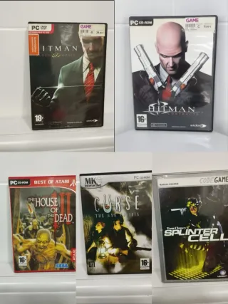 Lote de 5 videojuegos para PC. Lote 30€ También vendo por separado: - Hitman: Blood Money (10€) - Hitman: Contracts (10€) - The House of the Dead III (16€) - Curse: The Eye of Isis (6€) - Tom Clancy's Splinter Cell (2€) Entrega en mano o envío
