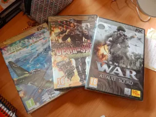Colección de videojuegos DVD para PC (ordenador) situados en la segunda guerra mundial. La colección incluye: - "Men of War Assault Squad" - "Death to Spies Anthology" (2 videojuegos en 1) - "Wings of Prey Edición de Oro" (incluye contenido extra) - Todos los juegos contienen su propio manual físico, con trucos, información, etc. - Todos los juegos están totalmente en español y tienen buenas notas de la crítica *Se requiere un lector DVD para poder instalarlos. Esta colección me la regalaron, pero yo no tengo lector DVD, así que no puedo jugarlos y por eso los vendo. No les he quitado ni el plástico.